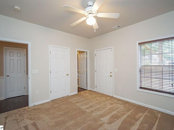 Excellent property located only minutes from downtown Greenville! New HVAC and water heater! This unit is on a very Private corner within the community and even has some great "green space" for walking dogs, etc...This features an attached garage and 3 bedrooms with 3 full baths! This floor plan is very desirable as it provides 2 bedrooms upstairs and a nice private guest suite with full bath on main level. The rear deck is large in size and has natural privacy with a large row of Leland Cypress trees. This location of the community and being a corner unit truly enhances this opportunity. The Kitchen, with granite and hardwood floors, Dining Room and Living areas are all very open and have access to the deck. There is a beautiful Gas Log Fireplace with a custom Built-In Entertainment Center above, picture hiding these days... The vaulted ceilings really make the upstairs Master and Guest Suites feel even larger! Come see this wonderful town home and you won't be disappointed!