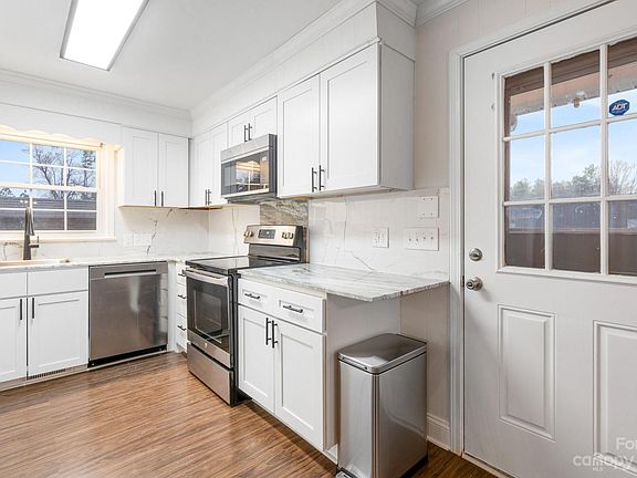 Beautifully renovated brick ranch in the heart of Wingate close the Monroe bypass ,restaurants and shopping. Recent updates include windows, flooring, bathroom and light fixtures. The kitchen has new cabinets, quartz tops, backslash, and stainless appliances. There are two 6 by 12 storage buildings that convey with property.