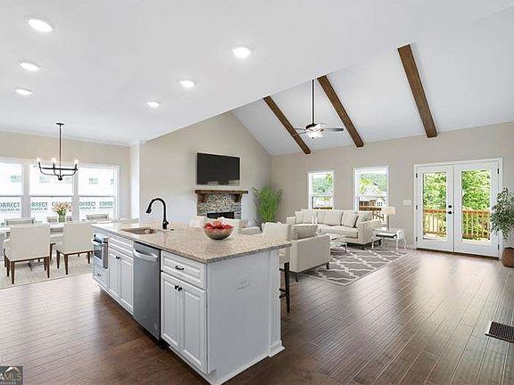 Open concept floor planStainless steel appliancesProfessional landscapingQuartz countersVaulted family room