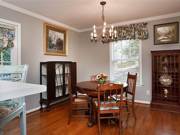 The u-shaped Kitchen shines with White Cabinets, Updated Hardware, and Modern Tile Backsplash. The unique shape allows for easy workflow and the bar provides the right amount of openness to the Dining Room so you can chat with others while you cook.