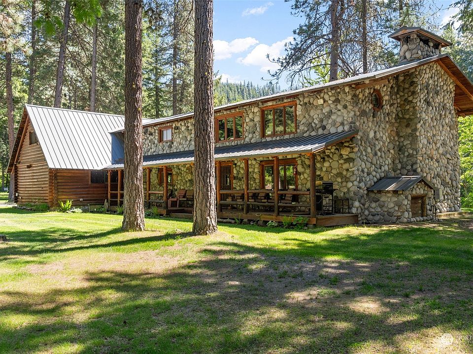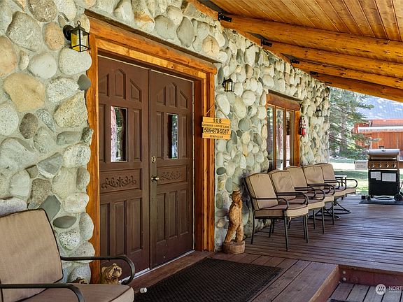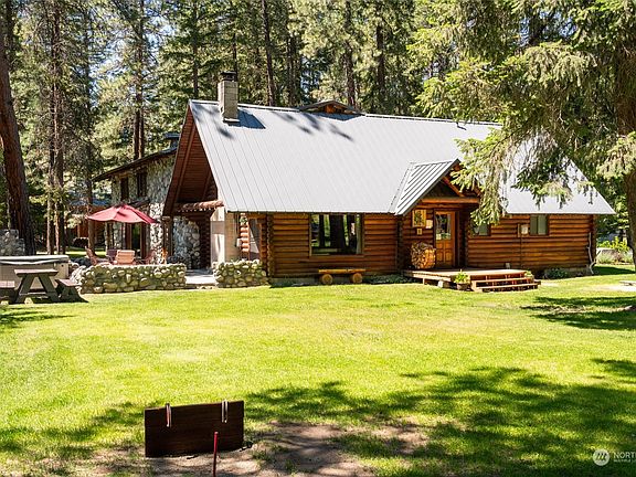 Welcome to Chiwawa River Lodge - a beautiful 4+ bedroom, 5+ bath log and stone home on the banks of the Chiwawa River! Vaulted ceilings with exposed wood beams in the kitchen and dining room, large great room with stone fireplace, three bedrooms that have ensuite baths, and an open loft that serves as an extra bedroom area. Sale includes a one-time transferable Chelan County STR permit eligible for up to 8 guests at one time, and all furniture and furnishings for a turnkey occupancy at closing. Two legal parcels totaling 2+ acres with over 300 feet of premium low-bank river frontage. Enjoy access to the groomed snowmobile trail system, close to Lake Wenatchee, 18 miles from Leavenworth, and 30 miles from Stevens Pass.