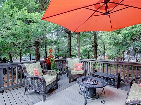 Uncovered deckOversized deck umbrellaFantastic treesPrivate sitting areas