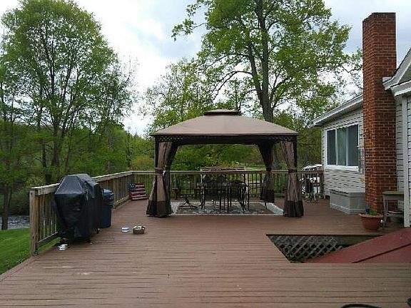 Have you been looking for a great home along Big Sandy with endless recreational opportunities? This home offers a large porch for all your outdoor parties.When your not fishing in the creek the above ground pool will be calling your name! With 4 garage bays of available storage space your boat and other toys will always have room. The interior of the home will not disappoint with large rooms, great views of the creek and yard. A third bedroom could be placed on the sun porch for those looking for an extra bedroom. The garage offers a large finished space that could offer additional living space or rented out for extra income (utilities are separate).