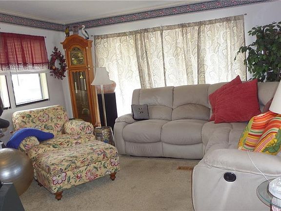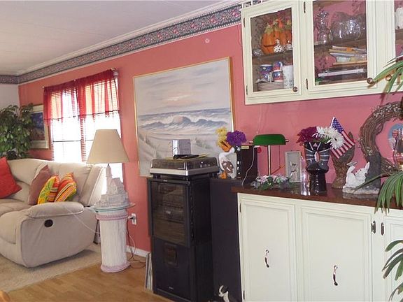 Great place to scale down. This 2 bedroom unit is in excellent condition. There is a a Galley kitchen plus a seperate dining area with a built-in hutch, The Living Room has a woodburning fireplace to warm you on a cool Fall evening. Nice large bathroom with a skylight and a laundry room. The enclosed porch gives extra storage or a nice extra room. Seller will give buyer a $3000 credit towards the replacement of the oil tank (must be done with-in 30 days of purchase). The buyer will then have their choice of switching to propane or just replacing the oil tank. Buyer will need to have approval of thepark owner. Monthly fees includes water, sewer, trash and snow removal from street. Taxes for the land also included in the fee. ( based on number of occupants).No financing currently available. No dogs allowed, except for service dogs.