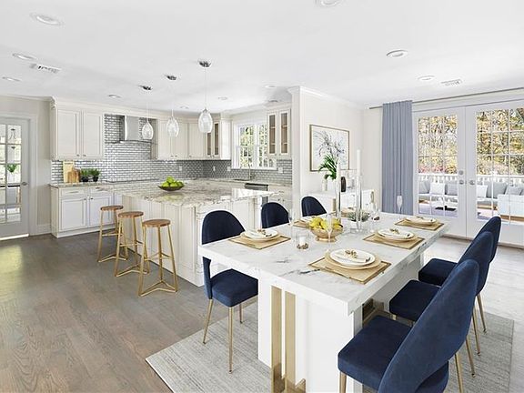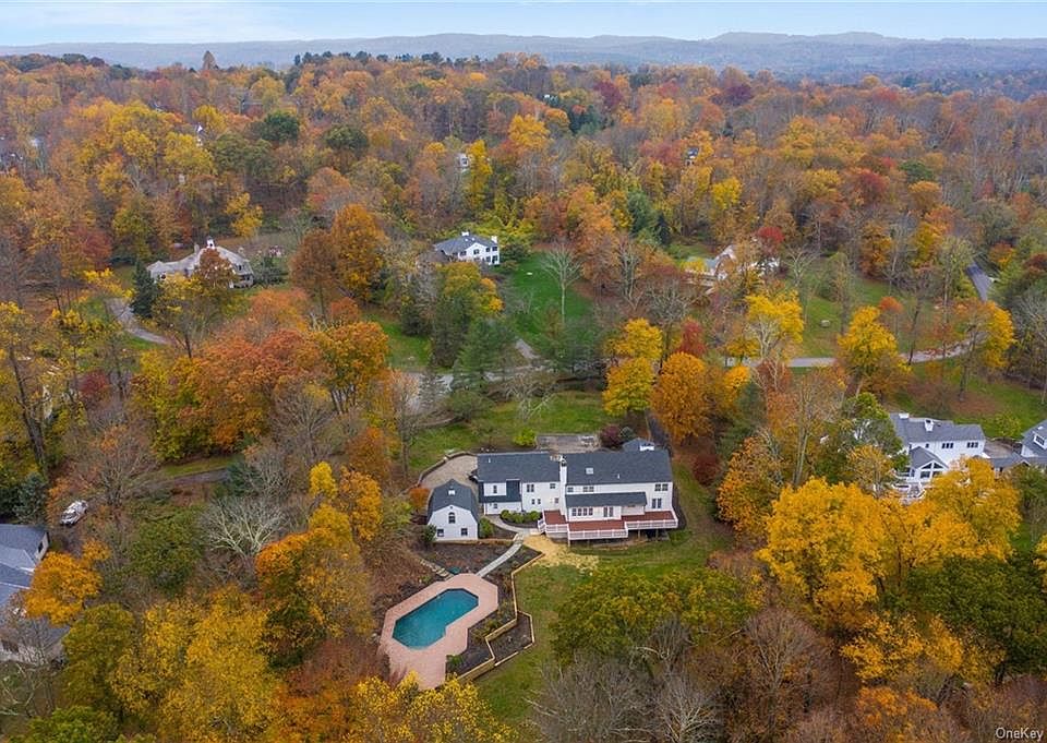 Completely renovated 5 bedroom/5.5 bathroom home offering 5,000 sq ft of luxury living on a cul-de-sac in beautiful Bedford, NY. Everything in this home is new from the mechanicals to the hardwood floors, seen throughout. Cast iron front doors welcome you into the space where the formal living room with 20ft ceilings and fireplace with cherry wood surround make a meaningful first impression. The light-filled eat-in kitchen with high-end appliances, granite countertops, glass backsplash, and custom cabinetry includes an island with seating for 4. The adjacent family room includes a 2nd fireplace and windows overlooking the private yard. A large dining room and China closet has French doors that open to the large mahogany deck overlooking the Gunite pool with Begium block steps and backyard. This home offers multi-functional rooms and has 2 home offices, ideal for those working from home. The 2nd floor master bedroom with spa-like ensuite, entirely marble with a his/hers shower, double sinks and soaking tub. The additional 4 bedrooms and 3 full bathrooms are down the hall. All bedrooms have custom closets and each bathroom has been redesigned with a special touch. Finally, the walk-out finished basement includes an entertainment area with wet bar, living area with fireplace, guest space, and full bath. A gorgeous heated Gunite pool with Belgium block steps and flat, private yard complete this exceptional property that borders 100 acre nature preserve.