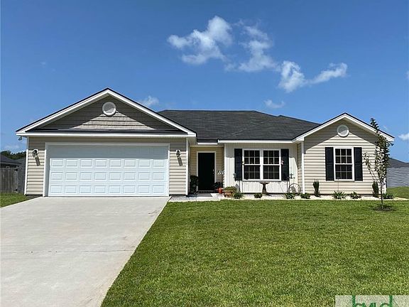 MOVE IN READY HOME IN SOUTH EFFINGHAM! The front of this well manicured home on a quiet cul-de-sac street shows off the stone landscaping and bird feeders. A foyer entry welcomes you into the heart of the open floor-plan home with wood-look vinyl floors, and a large living room with beautiful wood blinds that accentuate the large windows and natural light. The open kitchen features a tile backsplash and breakfast bar. The dining room overlooks the private vegetable garden. The master suite is well-equipped with an unforgettable MASSIVE walk-in closet and ensuite bathroom with double sinks. The split bedroom floor plan allows for additional privacy from the two spacious guest bedrooms. A large laundry room offers ample storage space. The large privacy fenced backyard includes an oversized patio slab for entertaining, a vegetable garden with raised planter beds, and a rain catchment system. All appliances included! Nest Thermostat! Vivant Security System! Large Garage with Work Bench!