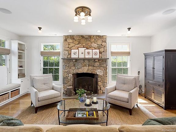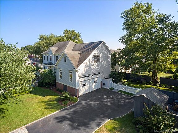 RARE beach area opportunity! This 5-Bedroom FEMA-compliant, center-entrance Colonial is located on a quiet, tree-lined street, just steps from Jennings Beach and walking distance to the town center and the Metro North train. The well thought out floor plan and classic appeal of this home has been featured in national advertising campaigns, as well as the Hallmark Channel Original Movie "Broadcasting Christmas." The 1st floor has 9 foot ceilings w/formal and informal living and dining areas, a chefs kitchen, powder room and a pantry, as well as a well-appointed mudroom with direct access to the garage. The 2nd floor has 5 bedrooms, 3 full baths and a laundry room and includes a master suite w/ample room for a king-size bed, a reading nook, walk-in closets and a luxurious en-suite bath w/shower, soaking tub and cedar-lined sauna. The 3rd floor with seasonal water views, vaulted ceilings and tremendous storage is perfect for an office, playroom or gym. Custom built-ins, window seats, wainscoting and window treatments throughout evoke a calm and serene atmosphere. The intuitive layout continues outdoors where several "garden rooms" have been designed and include a welcoming reception patio in front, a private side garden with a pergola and a patio in the back w/hot tub and seating/dining area. A shady lawn area (pool site!), shed, perennial beds, outdoor shower, irrigation system and landscape lighting round out the fenced-in yard. This is truly a special home and location! *Additional 700SF finished on 3rd Floor.