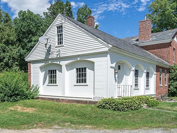 This stately home, listed in the National Register of Historic Places as "The Old Arms House," was built more than 200 years ago by Ira Arms and his family in the style of Asher Benjamin. It offers gorgeous living space with spectacular period details, in a beautiful location with breathtaking views. Set on three acres, with an additional acre across the street, the home features 3 bedrooms, 1 bathroom, formal living and dining rooms, a pantry, and laundry room. There's also a gorgeous barn, which housed Orchard Hill Antiques for many years, a garage, apple orchard, and a sweet gazebo set amid the flowers in the yard.