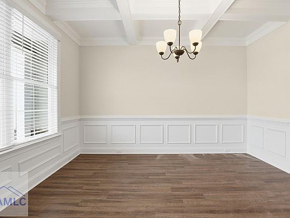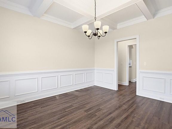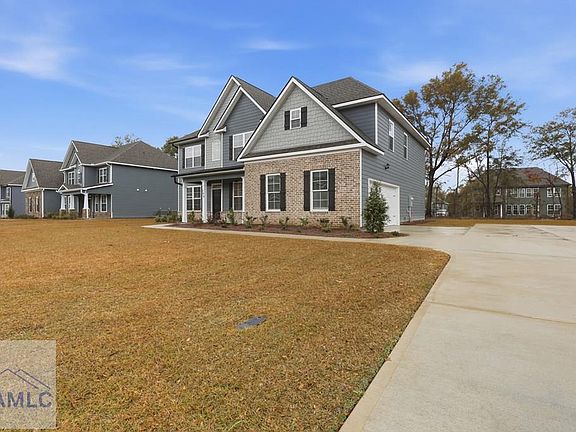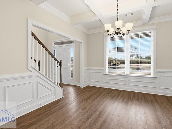 This beautifully designed new construction home offers a covered front porch that welcomes you into a bright entry foyer, where elegance meets functionality. To the left, an enclosed formal dining room showcases coffered ceilings and wainscoting, while a private office sits to the right—perfect for working from home or quiet study. As you move through the home, the staircase is positioned just off the main living area, leading you into a light-filled living room anchored by a fireplace and a stunning back wall of windows that floods the space with natural light. Architectural columns define the transition between the living area, breakfast space, and kitchen, adding depth and character without sacrificing openness. The kitchen is designed for both everyday living and entertaining, featuring a large island with seating, granite countertops, double ovens, a cooktop, pantry, and a built-in desk nook. A first-floor bedroom with a full bath provides flexibility for guests. Upstairs, the primary suite feels like a private retreat, offering a sitting area, fireplace, and a spacious ensuite with double vanities, garden tub, walk-in shower, and walk-in closets located within the bath. A media room with double doors and a wall of windows provides endless possibilities, along with three additional bedrooms, a shared full bath, and an upstairs laundry room. Complete with a covered back patio, this home blends thoughtful design, natural light, and elegant details to create a space that feels both grand and welcoming.