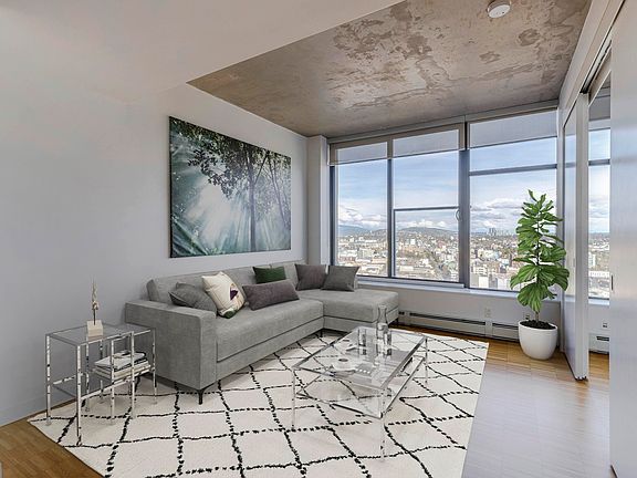 Located in Vancouver's historic Woodwards Building, this one of a kind sub-penthouse condo is only steps away from Gastown's many shopping and nightlife options. Situated on the 29th floor, the 630 square foot one bedroom has wall-to-wall windows that provide a 180 degree unobstructed view from Mount Seymour to False Creek. In addition to standard amenities, this unit comes with nine-foot ceilings, air conditioning, black-out blinds, Miele washer and dryer, included Internet and much more. You also gain access to the shared amenities that made Woodwards famous, including a rooftop fitness facility, shared working space, barbecue, hot tub and private access to shopping and parking.