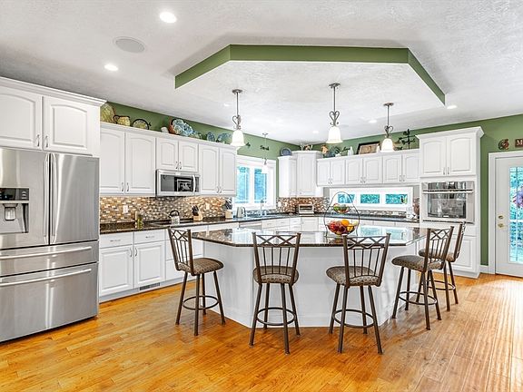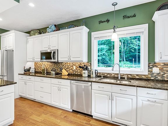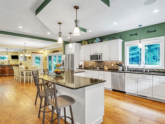 Welcome to your dream home! This stunning 3,578 sq ft home offers immaculate living spaces and luxury features throughout. The gourmet kitchen features under-cab lighting, a huge island, granite countertops, and stainless steel appliances. The living room impresses with soaring ceilings and a wood-burning fireplace that seamlessly flows into a bar area complete with surround sound, granite tops, a bar tap setup, and built-in ice maker. Just off the dining area you can step outside to an oversized, private back deck with skylights, ceiling fans, and a TV, overlooking a perfectly landscaped yard with genuine quartz rock clusters. The first floor also boasts a master suite with a walk-in closet and a full bath, a laundry room and 9ft ceilings. The second floor offers 3 bedrooms, a full bath, walk-in attic and a loft area overlooking the living room. With 3 mini-splits in addition to forced hot air and central air you can pick your efficiency for heating and cooling. See feature sheet!