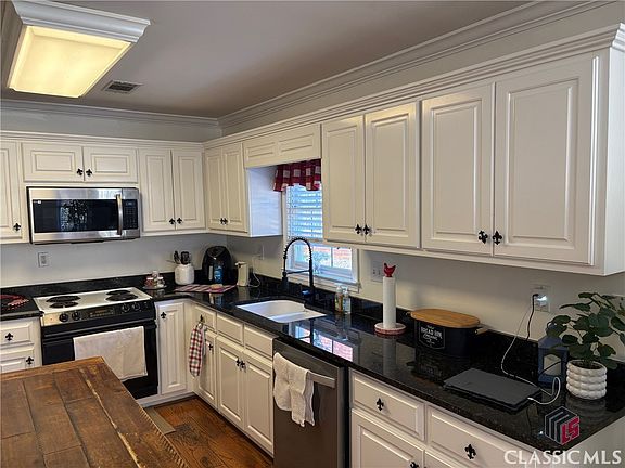 Welcome to this fantastic home in The Village at Jennings Mill. The Village is located in a gated community that is close to everything! The home has 3 bedrooms and 2 1/2 baths. You enter the home and notice the high ceilings in the great room. with a corner wood burning fireplace. You will love the huge kitchen with room for a table and even a sitting area with triple windows overlooking the back yard. Upstairs you will find 3 nicely sized bedrooms. The primary has a large bath with garden tub and separate shower. You will want to check out the back yard. It is truly a place to relax and entertain. Covered seating, lots of plants make it part of the home.