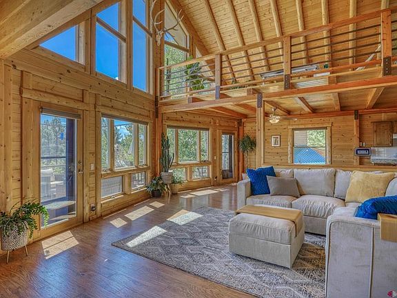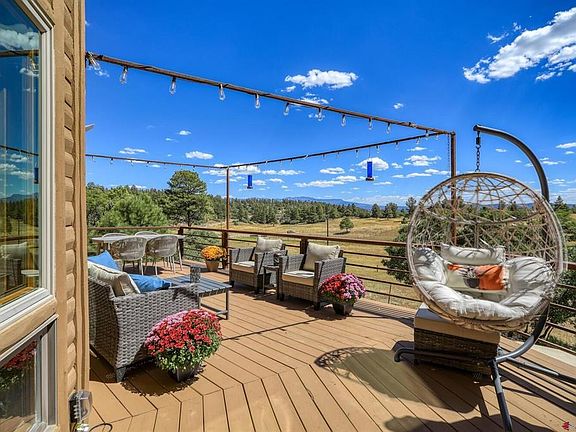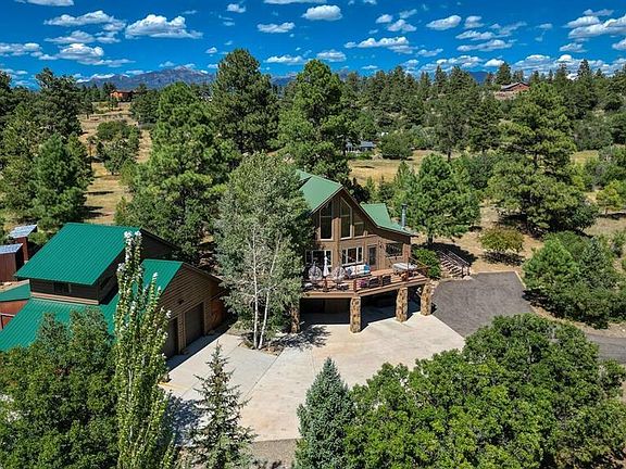 INVITING COLORADO HOME ON 5 PRIVATE, CONVENIENTLY-LOCATED ACRES WITH STUNNING VIEWS. This impeccably-maintained home is a must see for buyers searching for that perfect combination of mountain charm with convenience and modern amenities. From the well-designed entranceway, step into a light-filled great room with a modern kitchen, a highly efficient, wood-burning fireplace, and massive windows. On the main floor you'll find 2 bedrooms, one with its own private deck. Upstairs is a sunny, versatile loft space and an inviting primary bedroom with stunning north-facing windows. Downstairs you'll find ample storage as well as a beautifully-designed gameroom/bar for hanging out enjoying the company of family and friends. Natural wood, stone, granite, and metal create a beautiful blend of materials that make this home warm, stylish and inviting. Beautifully designed windows bring the outside setting in. Enjoy sunrises and alpenglow sunsets from the gigantic brand new deck. To the west is a private fenced yard for children and animals. The detached garage/shop with a brand new roof is a dream space, including ample storage, workshop with its own entrance, and an upstairs heating living space for guests, workout room, office, or studio. Versatility, convenience, amenities, and beauty combine to make this home a true stand-out.