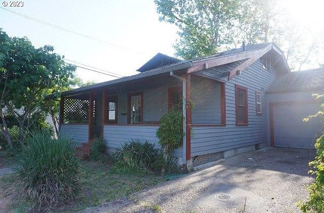 Classic Bungalow in the Whiteaker! Cozy covered front porch leads into this vintage residence having a modernized kitchen w/hickory cabinetry, sink, mixer, formica countertops, 200 amp electrical service, original Fir floors refinished/stained, & picture frame windows, tall base trim & 9-10'ceilings, new interior paint, skylight, gas, plaster walls & glass french door den, tiled main bath, attic bedroom with vaulted ceiling & full bath w/tiled shower/skylight. Gas service for stove or fireplace rough plumbed. Big, fully fenced & secure lot with detached loft shop or greenhouse & a converted garage suitable for shop or a music/art studio. Solar array w/tank & 200 amp panel are permitted. This classic is short distance to the hip Whiteaker, bike to the river or downtown Eugene. Cross Street is a non-thru street providing quiet privacy & an antique setting.