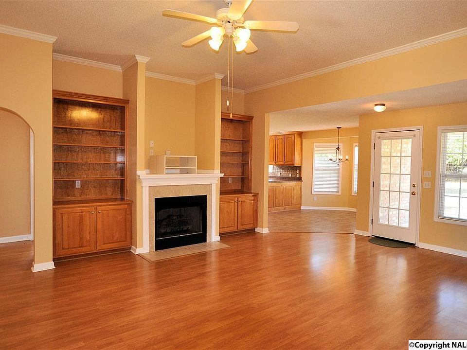 - FAMILY ROOM DESC: Ceiling Fan, Laminate Floor, Fireplace, Built Ins