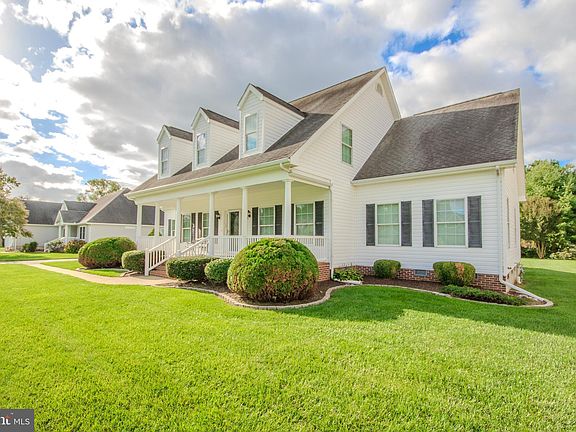 Welcome to 108 Davis Ct, a well-maintained Cape Cod in the sought-after Henry’s Green community, just minutes from downtown Berlin. Set on nearly a half-acre, this home offers over 3940 square feet of finished living space, with 376 square feet situated over the garage. The exterior of this home boasts excellent curb appeal, featuring a covered front porch, well maintained landscaping, a storage shed with double doors, and an oversized 28x30 side-entry garage with built-ins. Inside, the thoughtful floor plan offers flexible living with a large family room, formal dining, den/office, and an eat-in kitchen with island, pantry, and casual dining space. A spacious first-floor primary suite includes a huge walk-in closet and ensuite bathroom with dual vanities, tiled shower, soaking tub, and linen storage. Four additional bedrooms upstairs include a second primary suite with private bath, a Jack & Jill configuration, and bonus room ideal for hobbies, media, or home office use. A second large bonus room over the attached garage provides excellent options for guest quarters or a recreation room. A large, enclosed rear porch extends the living space outdoors, perfect for entertaining or relaxing. Hardwood and tile flooring, 9’ ceilings downstairs, a large laundry room with extra storage, and a gas fireplace add to the appeal. Well-maintained throughout, with abundant storage, and a location close to downtown Berlin, this home offers space, comfort, and lifestyle.