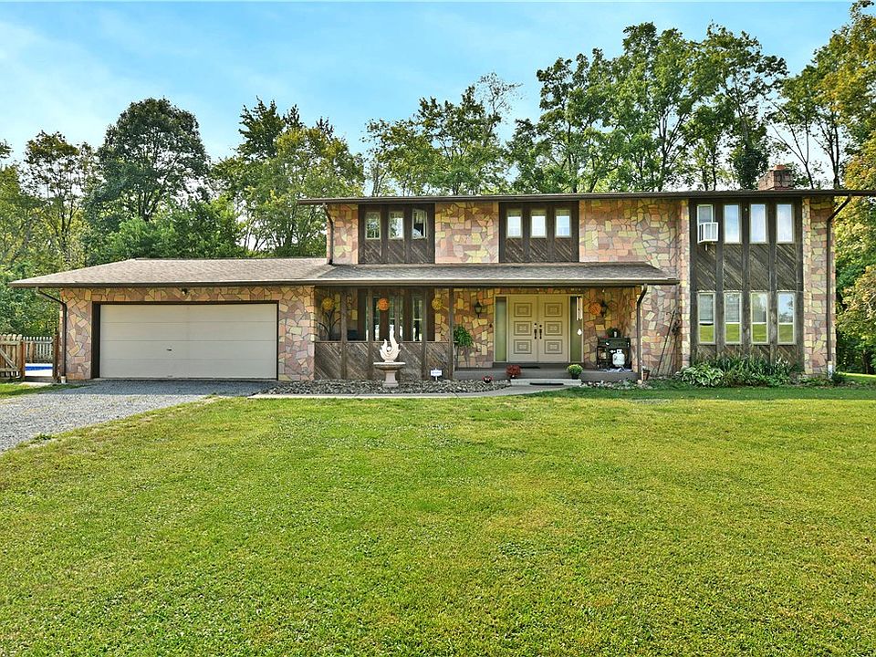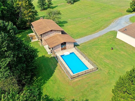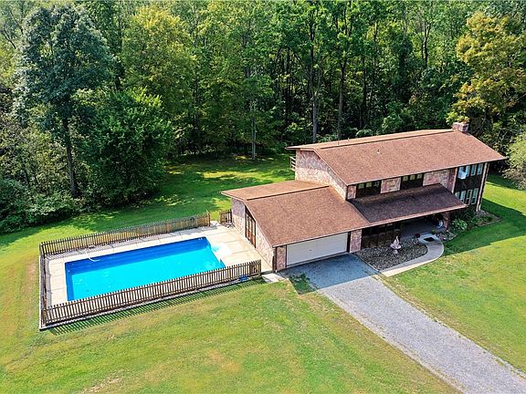 Looking for more than 65 acres of space? This Cranberry Area estate blends privacy with convenience—peaceful, country-style living just minutes from shopping and dining. A prominent two-story home, four-car garage, and massive steel outbuilding set the stage for endless possibilities. A winding gravel drive leads to the residence, complete with a covered patio and in-ground pool. The outbuilding offers high-bay entrances and abundant shop space. Inside, the foyer opens to a formal dining room, half bath, and spacious living room with a stone accent wall and fireplace. The kitchen features emerald countertops, an eat-in area, and access to the laundry and attached garage. Upstairs, three bedrooms share a full bath, while the primary suite includes a private bath. This unique property delivers space, functionality, and charm—don’t miss your chance to make it yours!