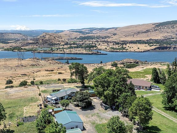 Here are the HUGE Gorge views you've been looking for! Enjoy panoramic vistas of Mt. Hood and the Columbia River stretching for miles in both directions from this stunning property. You can choose to reside in the well-maintained manufactured home, built in 2002 with many accessibility features, or build your dream home on this 0.9-acre lot, free from National Scenic Area restrictions. The property includes two RV hookups and a spacious shop with two vehicle bays, a workshop, storage space, a half bathroom, and a secondary laundry area. Additionally, there's a carport providing more covered parking. Don't miss this unique opportunity to own a piece of paradise!