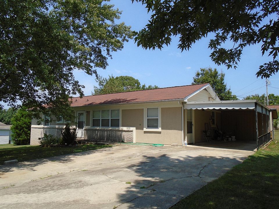 1 level rancher with many updates - hardwood floors, tile floors, the kitchen has new cabinets and granite countertops. level, fenced yard w/an 25 FT round, above ground pool (4-4 1/2 feet deep) in the back. Detached workshop and storage. Roof approx. 6 yrs old. Central H/A is approx. 3 yrs old. Gutters 2012. All newer vinyl windows. Security locks at front and side doors. Many updates have been done but the house needs some TLC and is priced accordingly. Selling AS IS. super buy on this home - see it today! Refrigerator is negotiable.
