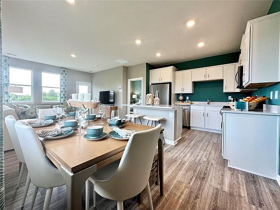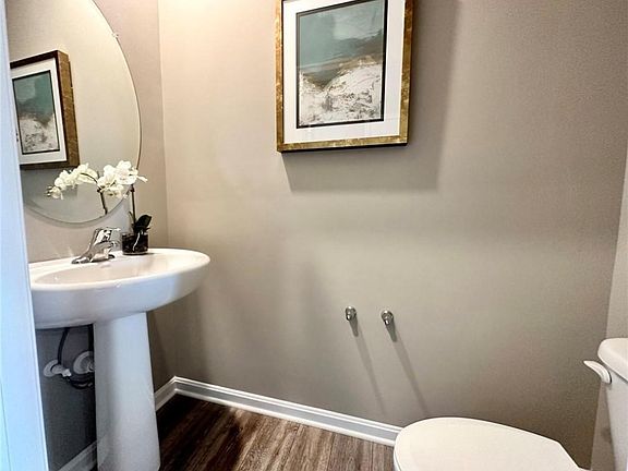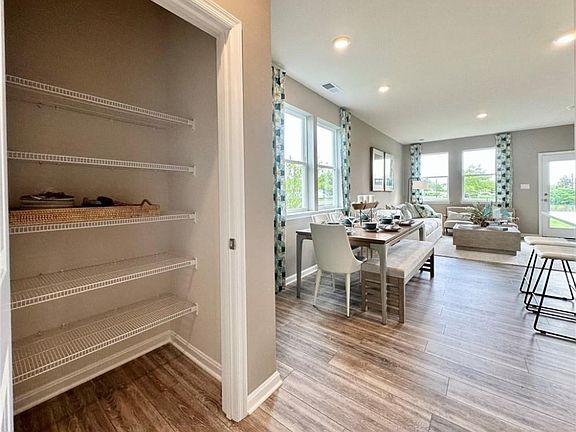The Brentwood is a 1,826 square foot open concept two-story townhome with three bedrooms, two and a half baths and a two-car garage. The inviting foyer features a coat closet and access to the conveniently located powder room. The home’s well-designed eat-in kitchen boasts substantial cabinet space, a center island with room for seating, granite or quartz countertops, a pantry closet, and stainless-steel appliances. The kitchen is open to the ample great room with access to the backyard. The large first-floor bedroom is a retreat in the back of the home with an oversized walk-in closet; its inviting bathroom has a double bowl vanity, and a generously sized shower. The tucked-away stairs lead you to a landing area where you will find the cozy upstairs laundry closet, two spacious guest bedrooms, a second full bathroom, and a linen closet.