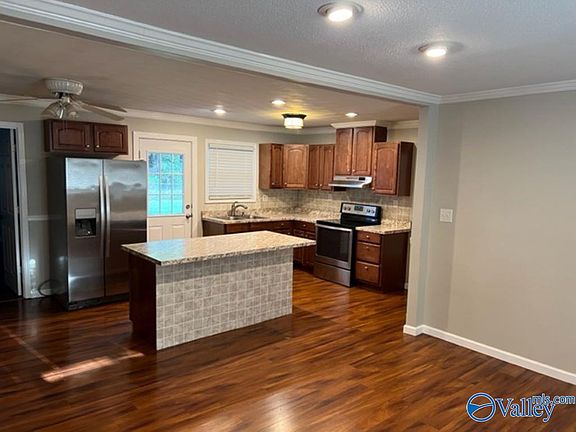 Four Bedroom 2 1/2 bath on a double lot featuring an open floor plan. Kitchens features island, stainless steel appliances. Large living area with fireplace and dining area. New: paint, lights, fans, new windows (2020), new roof (2019), storm shelter, and storage shed and fenced in backyard.