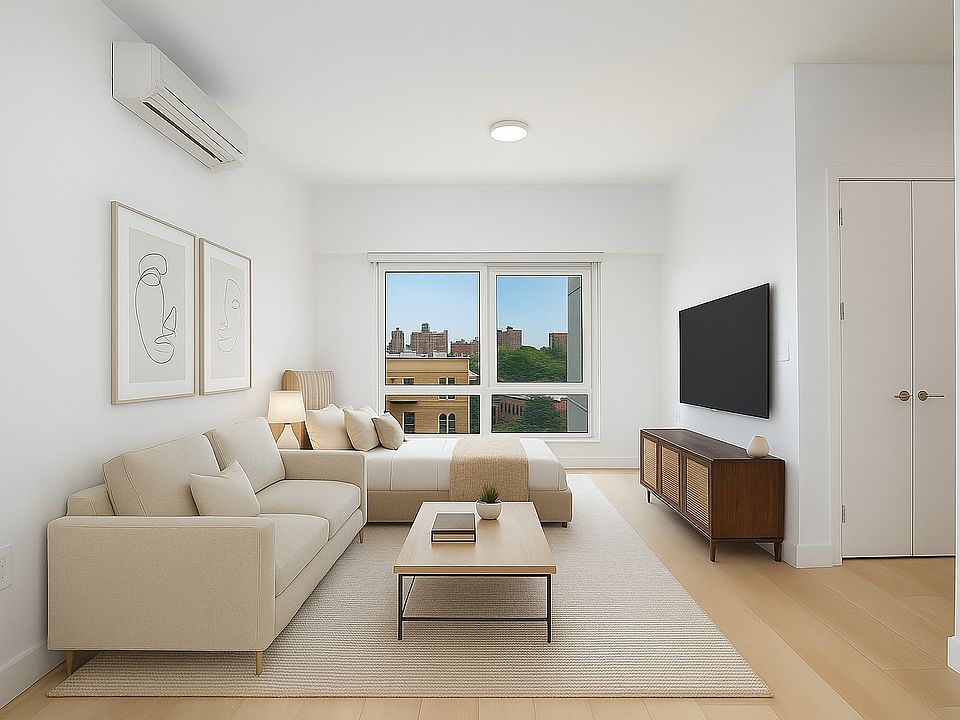 Discover this unique, oversized studio apartment in a stunning new development, perfectly located just one block from the A & C trains. The unit features in-unit washer/dryer, spacious layout, and luxury finishes throughout.