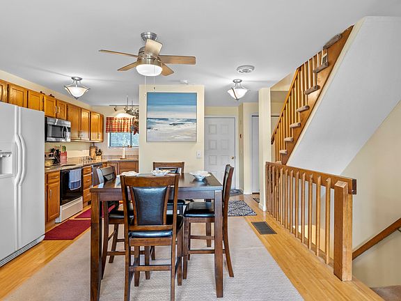 This 2 bedroom, 2.5 bath condo is move in ready, so you can instantly enjoy the easy living beach life! As you pull in you'll notice how private and serene this condo association is. You'll have 2 parking spots plus plenty of visitor parking. Walking in, notice the gleaming hardwood floors. The first floor offers a open floor plan, galley kitchen (granite countertops, newer dishwasher and microwave) opening to a large living room along with a half bath. Cozy up by the wood burning fireplace. Take in the beautiful views and listen to the birds from your private back deck overlooking the meadow pond marsh; great for entertaining, grilling, and relaxing. The second floor offers two bedrooms, both featuring private, updated full bathrooms! The lower level is FINISHED with a laundry area, and bonus family room/entertainment space with endless possibilities! This home comes complete with central air. This is a great commuter location 7 Minutes to the highway, 5 minutes to the center of town, 2 minutes to North Beach. The low monthly fee handles the exterior maintenance. If you are looking for low maintenance living close to the beach come see what this great community has to offer! No dogs allowed; however, an indoor cat may be accepted with written permission from the board. No showings til the open house Saturday 9/30/23 and Sunday 10/1/23 both from 10am til Noon.