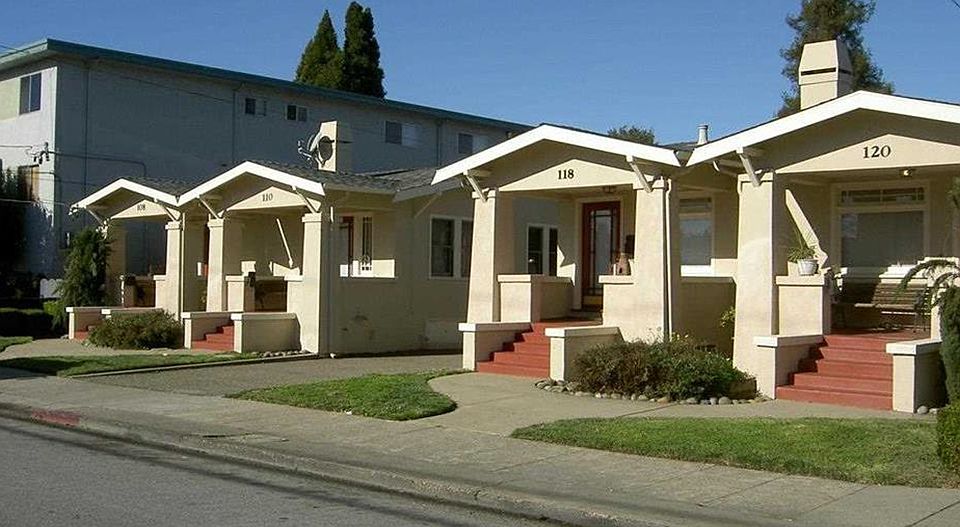 Side by side duplexes in San Leandro, craftsman style, separated by driveway. One-car garage for each unit, each unit has fenced rear yard and patio. Hardwood floors, built in China closets, laundry hook-ups in each unit, front porches, freshly painted exteriors, near schools, transportation. Tenants pay gas, electric, water and garbage, separate meters.