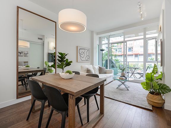 Welcome to Meccanica, a modern architectural masterpiece by award winning developer Cressey. This building features an incredible roof top patio, party room, meeting room and a very well equipped fitness center. Enjoy the convenience and lifestyle that Vancouver's Olympic Village has to offer. Take a short walk to restaurants, shops, grocery stores, the sea wall, Skytrain stations and more. This incredible 1 bedroom and den features 9' ceilings, air conditioning and an open concept floor plan that feels bright, airy and spacious. Beautiful engineered hardwood flooring, quartz countertops, large den, north facing balcony, walk in closet and more! Call or text today. First showings Friday Aug 19th 6-7pm, Open House Aug 20/21 Sat/Sun 2-5PM