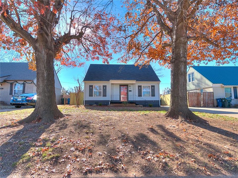This charming bungalow just went through an amazing transformation. Completely remodeled. Neighborhood has beautiful mature trees with friendly neighbors all around. Beautiful refinished hardwood floors, new windows, modern light fixtures. Kitchen has new cabinets, granite counter tops, tile backsplash, new appliances include gas stove, built in microwave, and dishwasher. This house is very versatile. The indoor laundry could also be a sunny breakfast nook or office. Upstairs you have a bedroom plus a bonus room. New HVAC system, nice size back yard with wood fence all around. Detached 1 car garage. This house won't disappoint. Easy access to I-40, close to shopping, restaurants, 5 minutes to Tinker Air Force Base, 4 minutes to Rose State College.