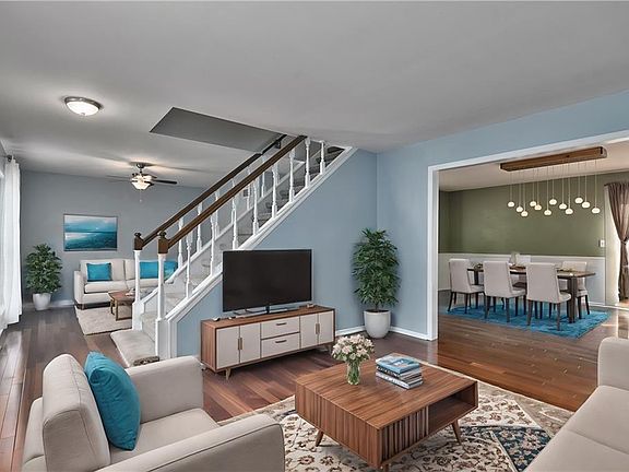 Move in ready Charmer! Updated 2 story featuring wood floors on the main level, family room, living room and dining room. Updated kitchen with quartz countertops, painted cabinets, new refrigerator (2024), breakfast bar and space for a table too. The family room has a beautiful brick fireplace. This room has been used as a large dining room but can also be a family room. The primary bedroom is huge! Primary bath has barn style door, spacious vanity, updated shower and walk in shower. 2 more generous sized bedrooms and a full bath complete the upstairs. The unfinished basement is ready for your finishing touches. Darling backyard and deck to relax and enjoy the cooler fall weather. Low maintenance vinyl siding. Roof 3 yrs old, HVAC 4 1/2 years old, new deck 2022, new front door 2021, primary bath updated 2021,washer and dryer stay. Neighborhood enjoys walking trails, sports courts and pool.