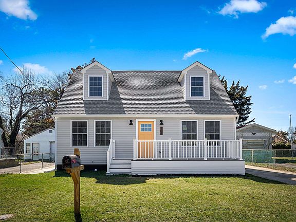 Beautifully renovated four-bedroom, two-bathroom Cape Cod Style home! Everything is brand new and tastefully finished! Situated on a large freshly sodded lot with plenty of room for a pool, summers will be a delight here. Enter the home from a front deck finished in maintenance free composite decking and white vinyl rails into an open floor plan living/dining/kitchen area floored in attractive Luxury Vinyl Plank (throughout the home) great for sandy feet. The kitchen has crisp white cabinetry, quartz and butcher block counters, new stainless appliances and aesthetically pleasing open wood shelving. There are two nice sized bedrooms and a full tile bathroom on this floor. Moving upstairs there are two more charming bedrooms and a full tile bath. Extras include on demand hot water, New HVAC, electric, plumbing, siding and windows, off street parking, partially fenced in rear yard, playground around the corner and so much more. Easy to show!