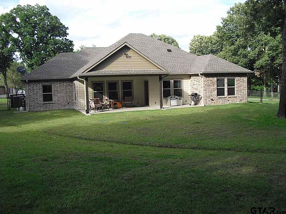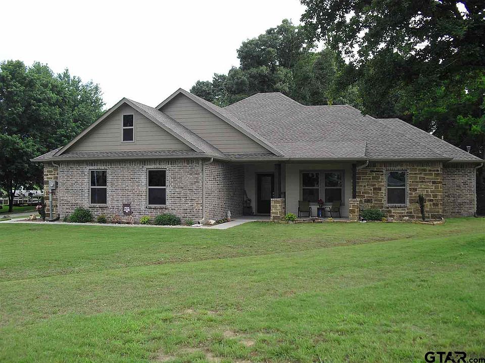 Custom Built in 2013.View of Lake Fork. Very neat & landscaped yard. Trees & shaded corner lot. Fully Chain linked fenced back yard. So many appealing features, A must see! Rock Stone Brick exterior. See thru fireplace with gas logs. Granite counter tops. Breakfast Bar, lots of natural light & energy efficient windows. Ceiling fans throughout. Master suite has large walk in shower. Seasonal closets. Inviting covered porch, front & back for outdoor entertaining. Hurry To See!!