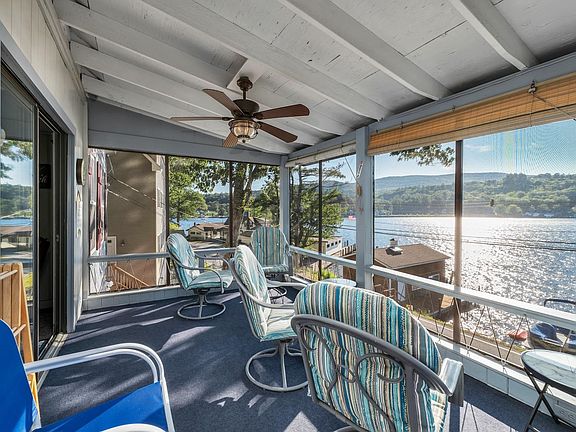 Welcome to your dream waterfront retreat! Set on the serene shores of Lake Winnipesaukee, this property offers you the perfect blend of comfort, convenience, and breathtaking natural beauty. Sip your favorite beverage on the screened-in balcony and take in the 180-degree sunset views over Alton Bay. Stepping inside, the main floor features the kitchen, full bath, and a main floor bedroom. While the living room and dining room provide a seamless flow for entertaining guests. Double sliding glass doors lead you effortlessly to the balcony, allowing for effortless integration of indoor and outdoor living. Upstairs there are two additional bedrooms, each offering their own unique charm and allure. Steps away, you'll find 58 feet of owned waterfront, complete with a private dock. Whether it's boating, fishing, or simply basking in the sun, this waterfront getaway promises endless opportunities for recreational enjoyment and making lasting memories. With a strong rental history for both the home and dock, this property presents an incredible investment opportunity, allowing you to enjoy the benefits of passive income while indulging in the lakefront lifestyle. Noteworthy features of this property include a new walkout foundation, providing the option for additional entertainment space to suit your desires. Conveniently located near a variety of restaurants, shopping destinations, and the mountains, you'll find yourself perfectly positioned to explore the vibrant surrounding area.