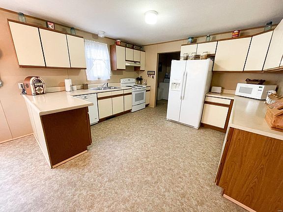 Extras: Kitchen offers abundance of cabinetry, snack bar & comes equipped with range & dishwasher / Formal dining area / Interior re-painted 2019 / Floor covering in main living area new 2019 / Nice sized utility room / Bonus or storage room / Generous sized rooms / Oversized primary suite has 2 closets and private bath offers double basin vanity, garden tub, & separate shower / Central heat & air / Thermopane windows / Full bath in hall / Metal roof new approx 2010 / Covered concrete patio / Metal carport awning / Exterior is maintenance-free vinyl siding / Rear yard is fenced / Detached workshop is 40x70 with concrete floor, water, & sewer has been capped off, elec baseboard heater, ventless LP heater, & window ac / Nice sized corner lot!