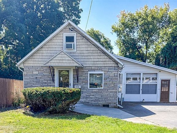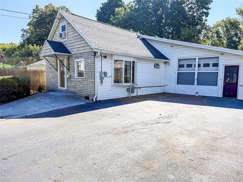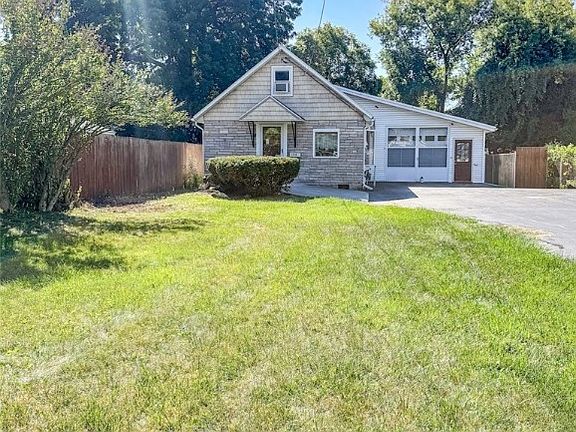 The convivence of first floor laundry and a full bath contributes to the homes functional design. Sliding doors lead to an enclosed porch great sitting area in the summer months. A lovely staircase leads to the 2 bedrooms with ample space. A good size office leads you to the huge garage. The garage has additional space for storage or a great workshop area. This a huge bonus for anyone needing a big garage. The exterior is vinyl with a long blacktop driveway that will fit several vehicles. The fully fenced in back yard has a patio and 2 sheds. A few finishing touches this home will be great for downsizing or starting out on your own.