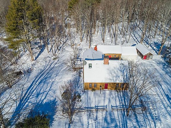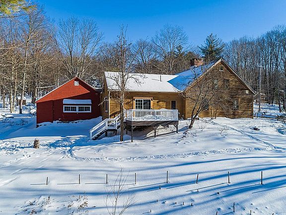 Fall in love with this dreamy combination of historic authenticity, modern convenience and 10 private acres of quiet trails and wooded habitat - only 20 min to Northampton! 1st floor offers primary bdrm, full bath w/ walk-in shower & jacuzzi tub, living room, large kitchen w/ granite counters, cathedral ceilings, skylights, gas stove & wooden deck, as well as dining rm, spacious pantry & adorable sitting room - all w/ wood flooring. 2nd floor features 2 bdrms each w/ tiled en-suite baths & walk-in showers. Bright natural light + fireplaces throughout. Attached barn/workshop + 2-car garage, wood shed, 200 amp electrical, Lennox hi-efficiency furnace, central air, & newer heat pump water heater. Plentiful garden space, a small pond, brook, fruit trees + berry bushes, original stone walls, and sufficient frontage for a 2nd building lot. Dead Branch State Forest is across the street for bird watching & hiking. Only 8 mins to Chesterfield Gorge. Fiber-optic Internet slated for early 2021.