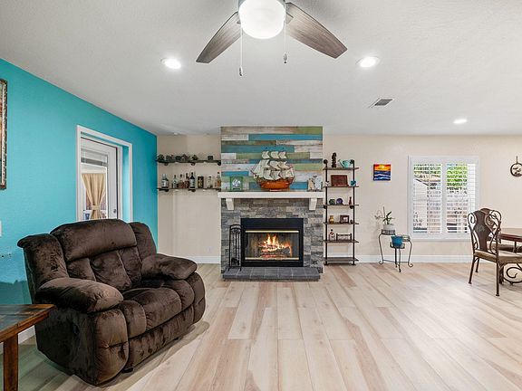 Nestled just one street from the Intracoastal Waterway in desirable St Augustine South, this well cared for 3BR/2BA concrete block residence is looking for new owners to call it their home. Featuring newer luxury vinyl plank flooring throughout - with tile in the wet areas - the home has a clean, beachy aesthetic. The open living room features a wood-burning fireplace & leads smoothly to the dining room featuring custom-built wall-to-wall cabinetry & recessed lighting – an inviting spot for entertaining. The kitchen is efficient & tidy with newer stainless steel appliances & water softener. A versatile sun room makes an ideal home office or a quiet retreat to read or relax. The 2 car garage features screen doors & a dedicated laundry area. Outside, the property shines with a beautifully landscaped, low-maintenance yard, complete with gazebo - perfect for unwinding under the palms. Sturdy construction with secure tie-downs ensures peace of mind during storms. Highlights include updated windows, newer appliances, well pump for the irrigation system, a whole house re-pipe in 2023 & 2024 hot water heater. Additional features like plantation shutters & generator connectivity only add to the functionality of this home. Located in a high & dry area with no flood insurance required, the fully fenced rear yard offers plenty of privacy & space. For boaters or RV owners there’s handy space on both sides of the home with double gates for easy access. Best of all, you’re just a short walk from the Intracoastal Waterway - literally less than a minute away. With no HOA or CDD fees, St. Augustine South provides an active, friendly community with miles of walking, biking & golf-cart paths along the Intracoastal, plus access to two boat ramps, a community center, tennis courts & a children’s playground. Conveniently located near shopping, hospitals & only a 15-minute drive to historic downtown St. Augustine & the beach, this home is the perfect blend of comfort, convenience & location. This is truly a move-in-ready gem—schedule your showing today!