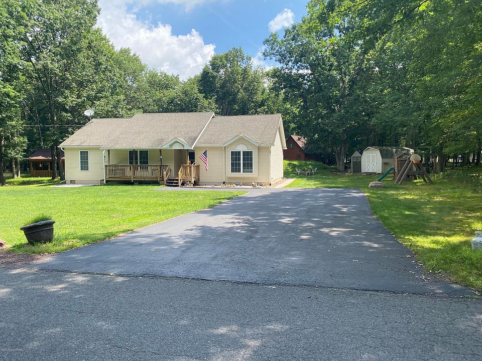 Beautiful one level ranch located in desirable Towamensing Trails, an amenity filled community. Private Security, Clubhouse, Outdoor Pool and Tennis courts. ATV's & Golf Carts allowed. A short drive to 80 & PA Turnpike. Paved Driveway, Solid Wood Cabinets, Kitchen recently redone with custom tile flooring, solid wood cabinets, back splash and granite counter tops. Bamboo wood floors throughout. Wooden utility shed and gazebo over trex decking. Come see this beauty it won't last. Property is owner occupied use ShowingTime.