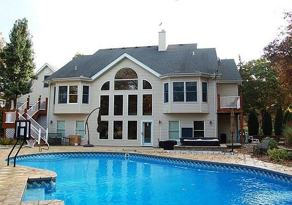 Updated & Upgraded +/-3 Acre Level Lot w/In-Ground Salt Water Pool & ample decking for relaxing,dedicated Spa & Firepit for entertaining.Detached Garage for extra cars/workshop,add parking & Attached 3 car Oversized Garage.Wall of Windows to private backyard.Open Floorplan,site finished Hardwood Floors on M/F,Great Room opens to Brfst Room & boasts gas fireplace.Kitchen/Brfst Room w/42"Custom Cabinets,Brfst Bar/Island w/Granite Countertops, SS Appliances/Pantry. Access to Composite Deck from Brfst Roon. Large Dining Room w/ space for all & M/F office/den w/ French Glass Doors. MF Master Suite w/Private Deck,Luxury Bath w/jetted tub/framelss glass shower/double sinks/dressing table w/granite tops/walk in closet with organizers, & ceramic floors. 2nd Floor Bonus Room could be a 5th Bedroom.Additional 3 Bedrooms in LL w/lots of closet space & 1 boasts a private bath.LL Family Room w/wood burning stove/wet bar/dishwasher/granite counter top.Over 4700 sq ft of living space.