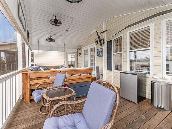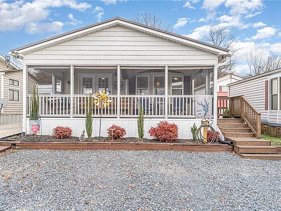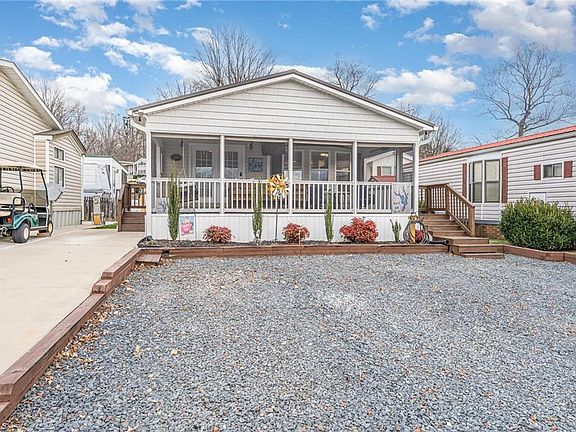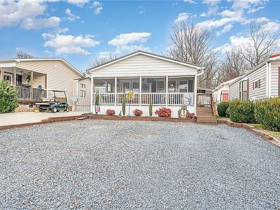 Beautifully updated 2-bedroom, single-level modular home located on a spacious double lot with stunning views of Badin Lake. This charming property offers a welcoming screened porch complete with a custom sectional, outdoor mounted TV, and plenty of room to relax or entertain. Inside, you'll find many modern updates, including engineered hardwood flooring, solid surface countertops, and a ceramic tile backsplash. The open-concept kitchen, dining, and living room feature a center kitchen island,perfect for gathering. Appliances, including the washer and dryer, are less than two years old (except the microwave). The home features a  durable metal roof (2019), new vapor barrier, new vinyl siding and new plumbing.  Outside, the fenced backyard provides ample space for kids and pets to play, along with a storage building for added convenience. Whether enjoying lake views or the peace of your private yard, this home offers the perfect blend of comfort, style, and functionality.
