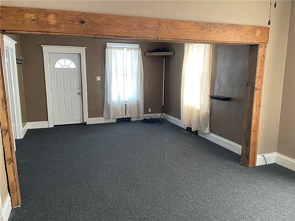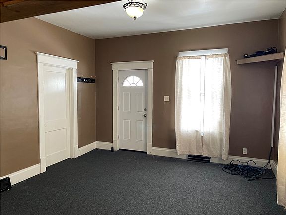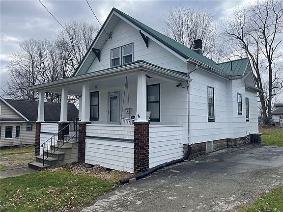This 3 BR, 1.5 bath home is situated on a double lot with a driveway and the extra lot for off-street parking. It has front and rear porches, a new metal roof, central-air and an outside entrance to the basement. Welcome home to the large, wide open living & dining rooms, a cheery kitchen with gas range & a cold storage room, 2 bedrooms & a full bath on the main level and a bedroom and half bath upstairs. The upstairs is heated by electric wall units and the main level is heated by gas forced air and cooled by central air. Some rooms have been freshly painted and there's some newer floor coverings. Low taxes! Spring right into this one and call it yours!