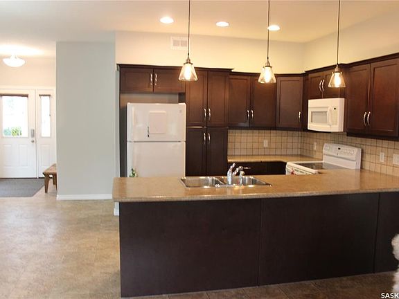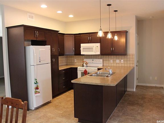 Welcome to 108 Erickson Street. This spacious condo will surely impress you with its Condition and Location. With 1470 sq ft on the main level, an open concept and a partially finished basement - this Country Style Duplex has everything you are looking for. Large kitchen with dark cabinetry and breakfast bar. Good size formal dining room. Large living room with gas fireplace and garden door to rear deck. Huge master bedroom with 4 piece ensuite and 9'x6' walk in closet. Good size second bedroom. Main floor laundry. Heated double attached garage. Basement has all rooms framed. New shingles Sept. 2025. Only steps away from the Public swimming pool, hockey rink, curling rink and Midale Health Centre.