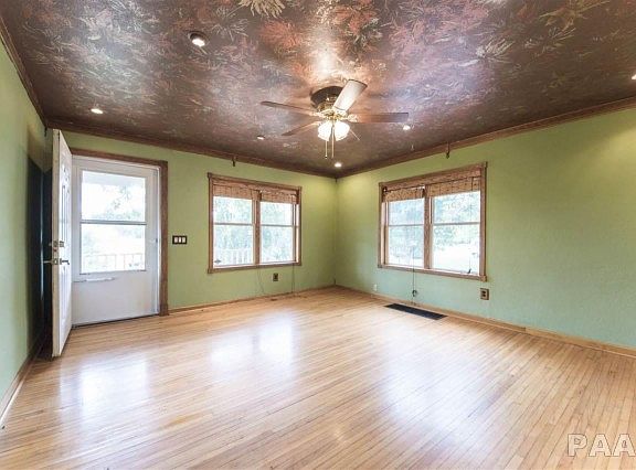 Very Cute home with 2 bedrooms and 1 bath situated on a nice lot with many mature trees. Home offers a nice front porch with a lovely view for relaxing, large back yard and detached garage, located close to park, shopping, schools and a dog park! Arched doorways add charm to great starter or step-saver house with a clean, unfinished basement. Lots of options for extra finished sqft in basement. Come see today!