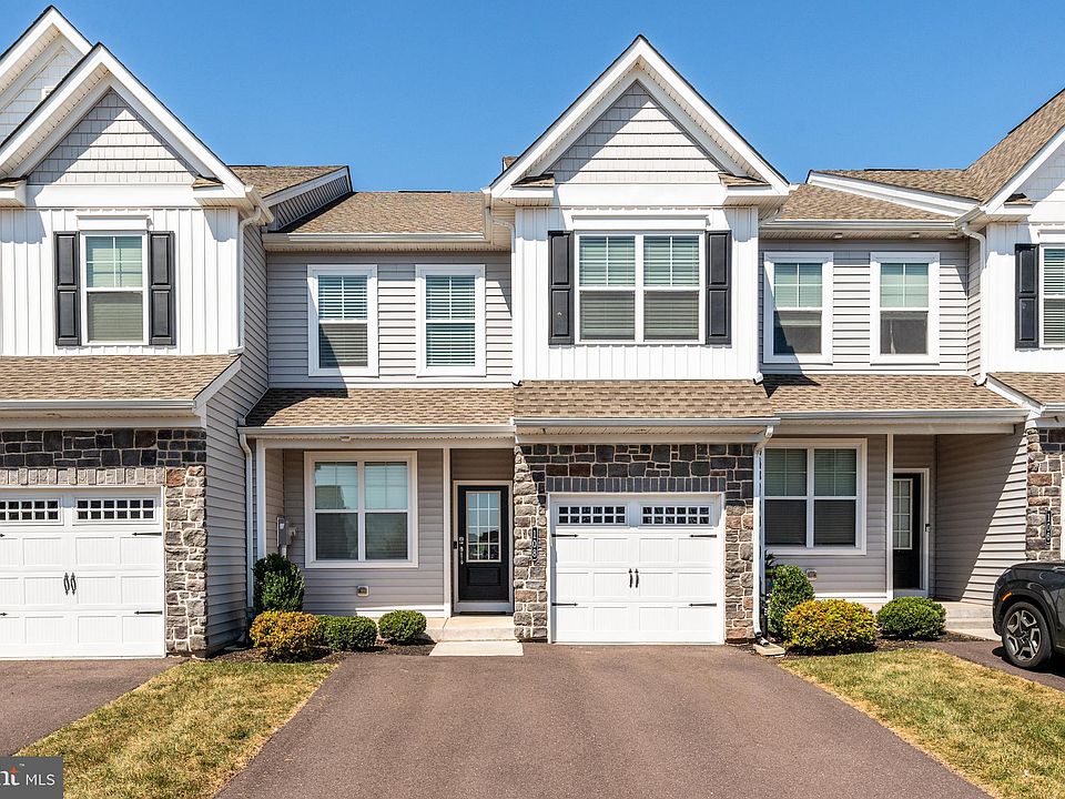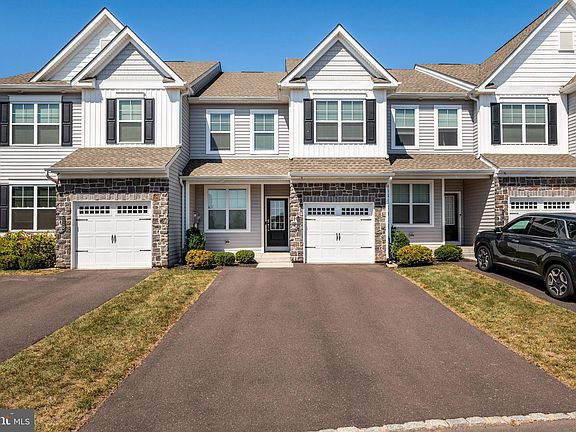 Welcome to this professionally decorated Model Home at Everleigh, a picturesque community nestled in the sought-after Spring-Ford School District. This beautiful home is packed with designer upgrades and sits on a private lot that showcases impeccable exterior detail, making it a true standout. From the inviting front porch to the well-appointed interior, every aspect of this home has been thoughtfully crafted for comfort and style. Upon entry, you'll be greeted by a spacious foyer leading to a first-floor study with elegant double entry glass doors — the perfect space for a home office or quiet retreat. The heart of the home features a chef’s kitchen with an oversized quartz island offering ample seating, complemented by an informal dining area and a stunning great room with expansive windows that flood the space with natural light. The sunroom, with its custom wood beams, adds even more living space and creates a bright and airy atmosphere — perfect for relaxation or entertaining. The first floor also boasts upgraded hardwood laminate flooring, which extends into the upstairs hallway and the Owner's Suite. The Primary Suite is a true retreat, featuring vaulted ceilings with dramatic wood beams and an abundance of closet space. The private Owner’s Bath includes high-end upgraded tile for a spa-like experience. The second floor is completed with two spacious secondary bedrooms, a convenient laundry room, and a full guest bath. Surrounded by lush, wooded space, scenic walking trails, and easy access to Limerick Community Park, this home is perfectly located for those who enjoy outdoor recreation and natural beauty. With convenient access to shopping, dining, and major commuter routes, including Route 422 just one mile away, this home offers the ideal balance of tranquility and convenience. Exceptional Design & Upgrades