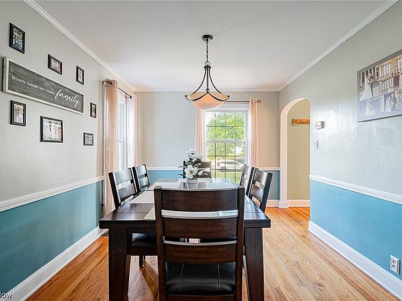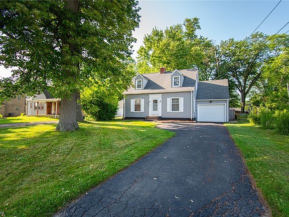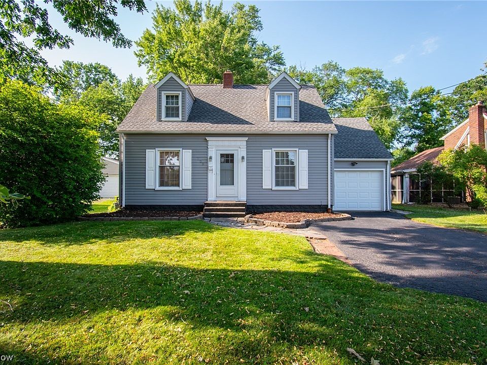 Welcome to this charming cape cod in the heart of Boardman Township! Conveniently located and with no houses across the road, this well maintained home is situated on a large lot with serene surroundings. Entering through the front door, you'll find the dining room to the right and the living room to the left, both with beautiful hardwood floors. The spacious living room has a gas fireplace and lovely natural lighting! Through the living room is the first floor half bathroom, as well as the huge, carpeted bonus room. Completing the first floor is the kitchen, with ceramic tile floors, tons of cabinets for storage, and all appliances included. The second floor features three large bedrooms with sizeable closets, and a full bathroom. The basement is partially finished with ceramic tile flooring and glass block windows, which makes a great additional living area for a rec room, playroom, gym, etc. The backyard oasis features a new, two-tier wooden deck, a shed with electric, and a