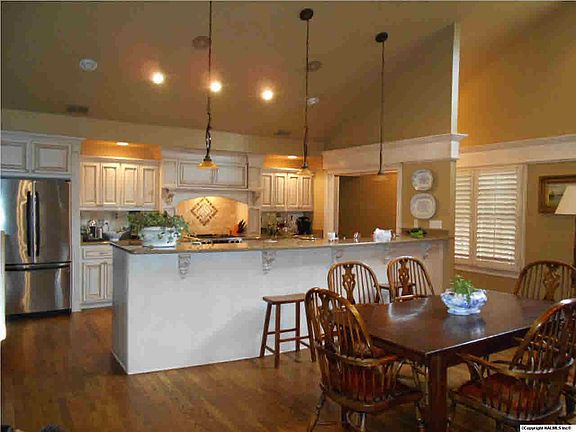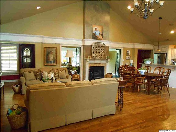 Beautiful update home features 3BR, 3.5BA, open floor plan, hardwood flrs. Large master suite with walk-in closet, MBA w/Travertine floor & shower. Mother-in-law suite or 2nd master suite, kitchen w/custom cab & granite countertops, see-thru FP between grtrm & DR, Outdoor dining with Alabama Slate flr, Jenn Air gas stove & convection oven, central vac, sec sys, irrigation sys, surround sound plus much more! Call Betty Greer 256-441-9517