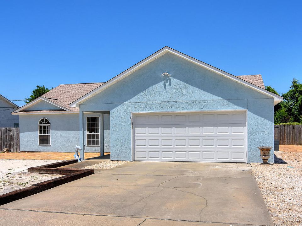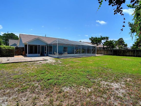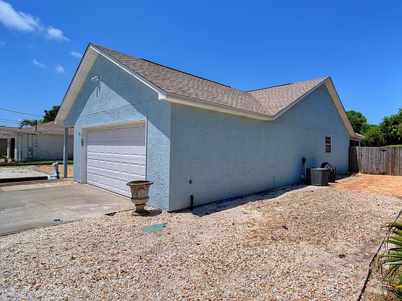 No HOA fees and private screened in pool! Beach living made affordable and easy in this move in ready home with a screened in-ground pool, privacy fenced backyard, and all tile flooring. New roof in 2014, freshly painted exterior, and large lot with a side driveway for additional guest parking or to park your boat, trailer, or RV. Less than 5 minutes to the beach, public park, and schools, this home is ready for a new owner's personal touch! Shallow well for irrigation and sprinkler system is capped in front yard, ready for your own landscaping design. All appliances, washer/dryer, and freezer in the garage convey. Home warranty and termite bond is paid thru September.