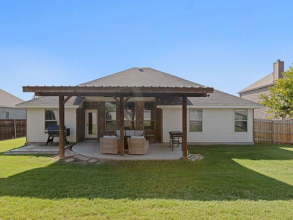 MOTIVATED SELLERS! BUYERS WILL RECEIVE 1% BELOW MARKET INTEREST RATE USING PREFERRED LENDER! Welcome to this one-owner, meticulously maintained home where pride of ownership shines throughout. From the moment you step inside, you’re greeted by a warm, neutral color palette and durable luxury vinyl flooring that flows into the private home office with French doors—ideal for remote work, hobbies, or a quiet study space. The thoughtful split-bedroom layout offers privacy and flexibility, with spacious secondary bedrooms featuring vaulted ceilings, ceiling fans, and generous closets, all served by a nearby full guest bath. At the heart of the home is the inviting open floor plan designed for both everyday living and entertaining. The family room is enhanced with a striking stacked-stone electric fireplace framed by custom built-ins and large windows that fill the space with natural light and provide views of the backyard. Seamlessly connected, the kitchen is a chef’s delight with granite countertops, a central island and breakfast bar for casual dining, custom cabinetry, a walk-in pantry, and abundant storage. The adjoining breakfast nook is bright and cheerful, offering the perfect spot to start your day. The private primary suite is a true retreat, with vaulted ceilings, room for king-sized furnishings, and a spa-inspired ensuite bath complete with dual vanities, a relaxing garden tub, separate ceramic-tiled shower, and two walk-in closets for maximum organization. Step outside to the extended covered back patio, perfect for outdoor dining, entertaining, or simply enjoying peaceful evenings. The privacy wood fence creates a secure and comfortable setting for pets, children, or weekend gatherings. With timeless finishes, thoughtful upgrades, and a highly functional layout, this home is truly move-in ready. Don’t miss your opportunity to make it yours!
