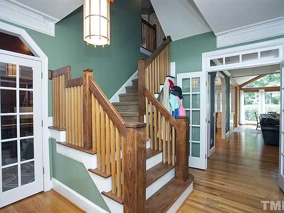 Charming home, newly renovated, awaits behind the welcoming rocking chair porch. Fresh neutral paint throughout the interior. New SS appliances, granite counters, tile back splash, and fixtures. 1st floor guest room and full bath. 3rd floor teen/nanny suite with full bath and study area. Featuring a spacious 1st floor with family room, sun room and morning room. 3rd car parking pad, fenced back yard with golf course view and access to trails.